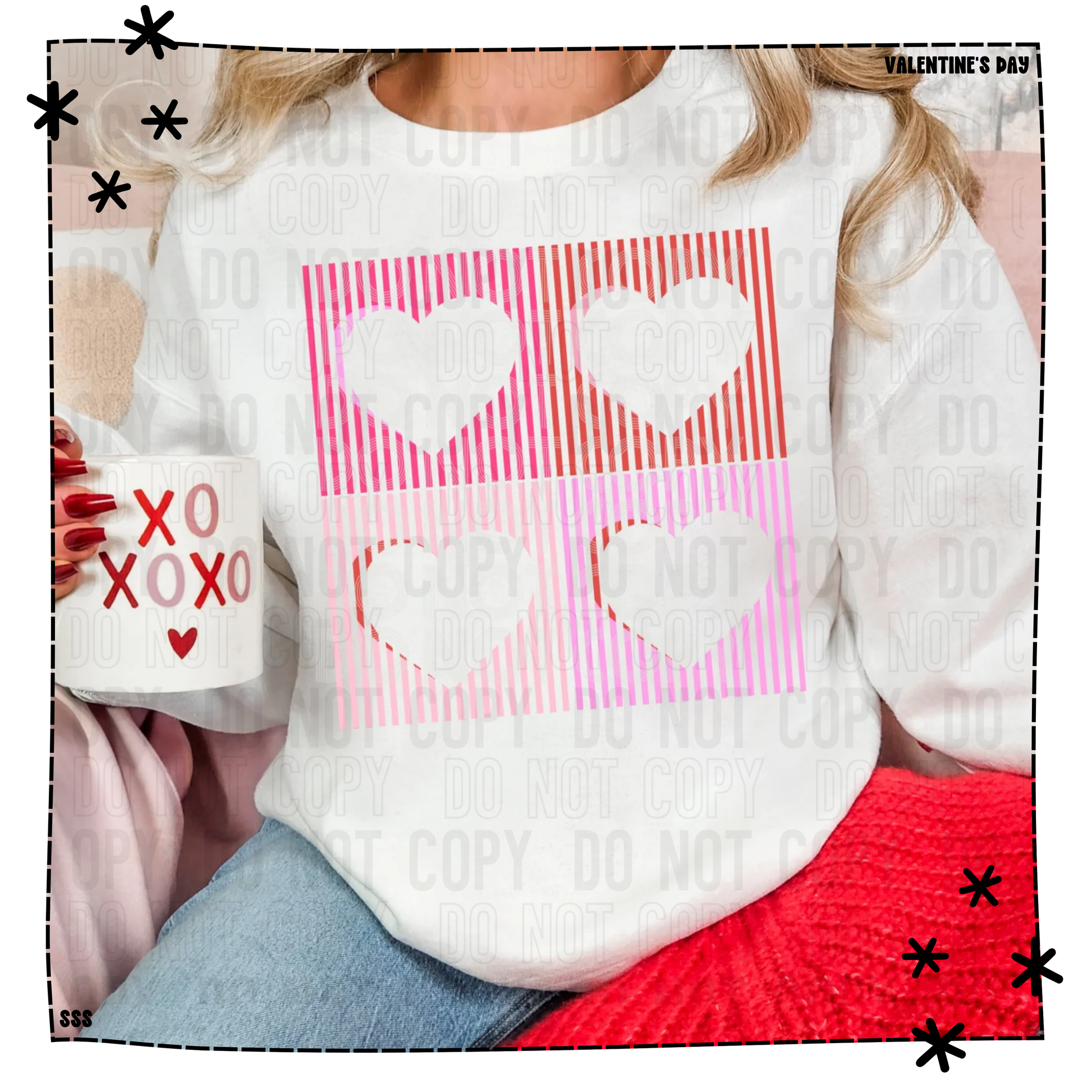 Four Hearts In Pink And Red Lined Squares